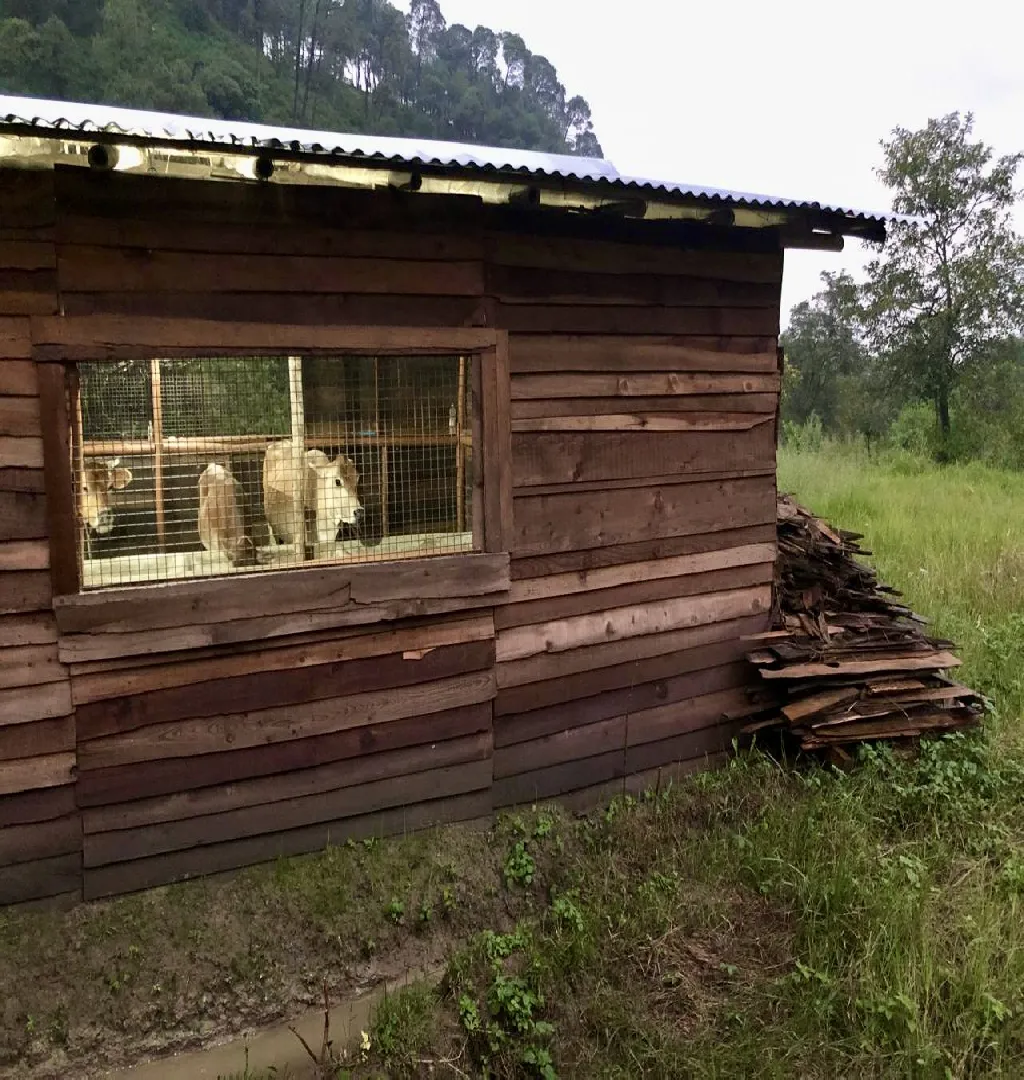 • Structure: Covered shed (made with bamboo, waste wood and steel plates on the roof with natural ventilation & clean flooring with cow mats
