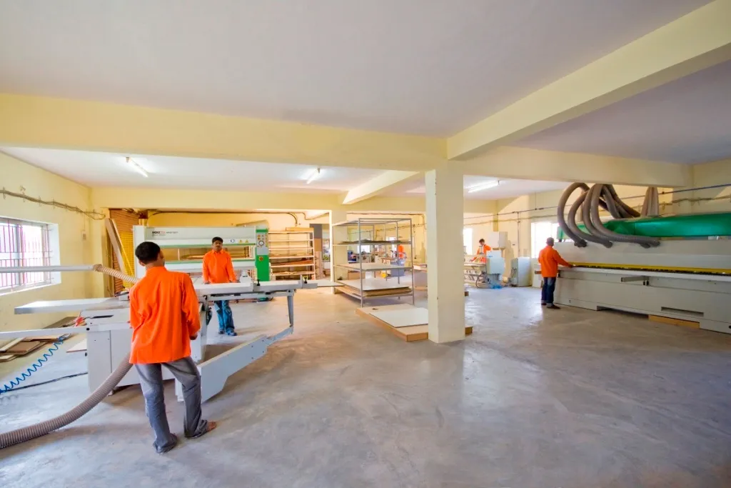 A key strength of the business is its in-house modular furniture manufacturing facility. The factory is fully mechanized, ensuring consistent quality, precision finishes, and efficient production timelines. This setup allows greater control over costs, customization, and delivery schedules.