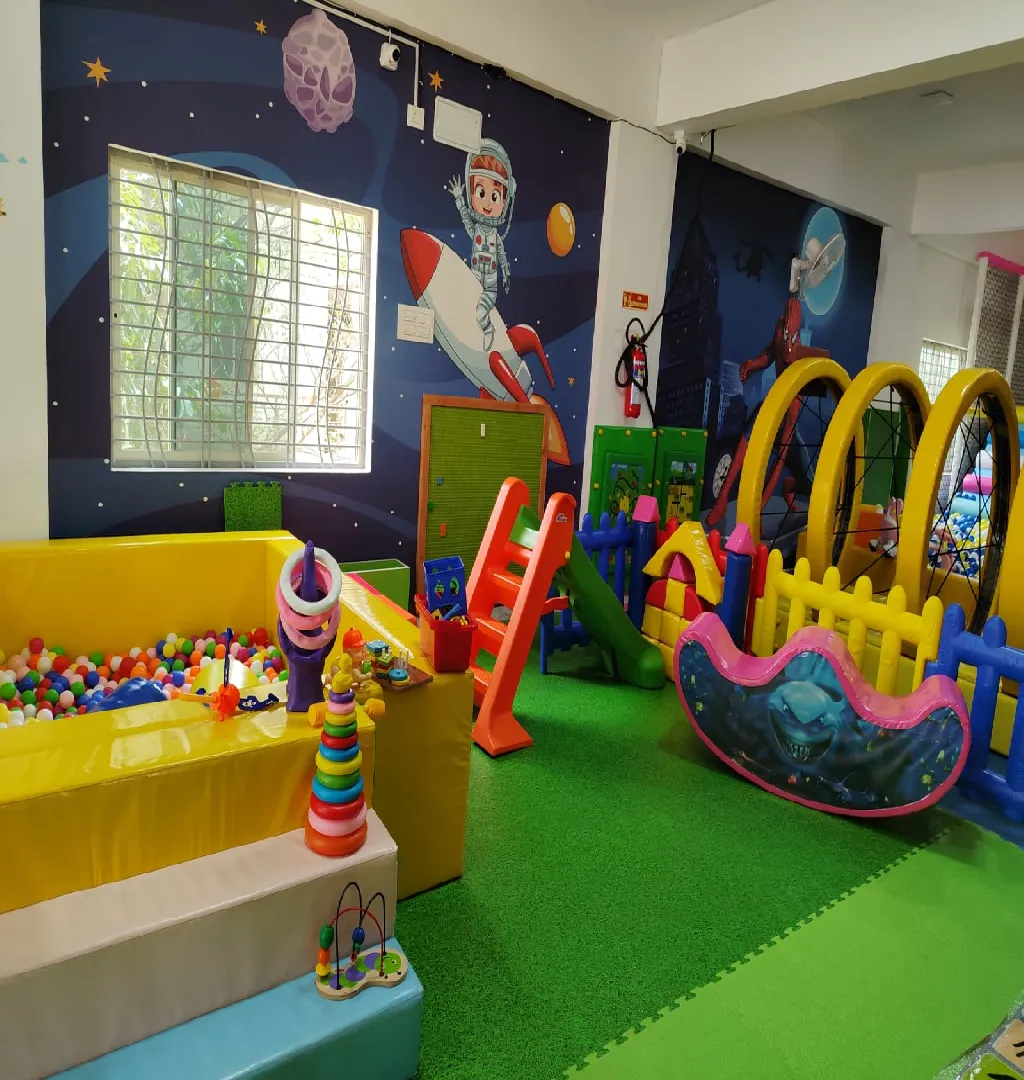 A well-maintained indoor play and party zone located in Bengaluru, catering primarily to children and families. The center is equipped with premium child-safe play infrastructure and attracts: