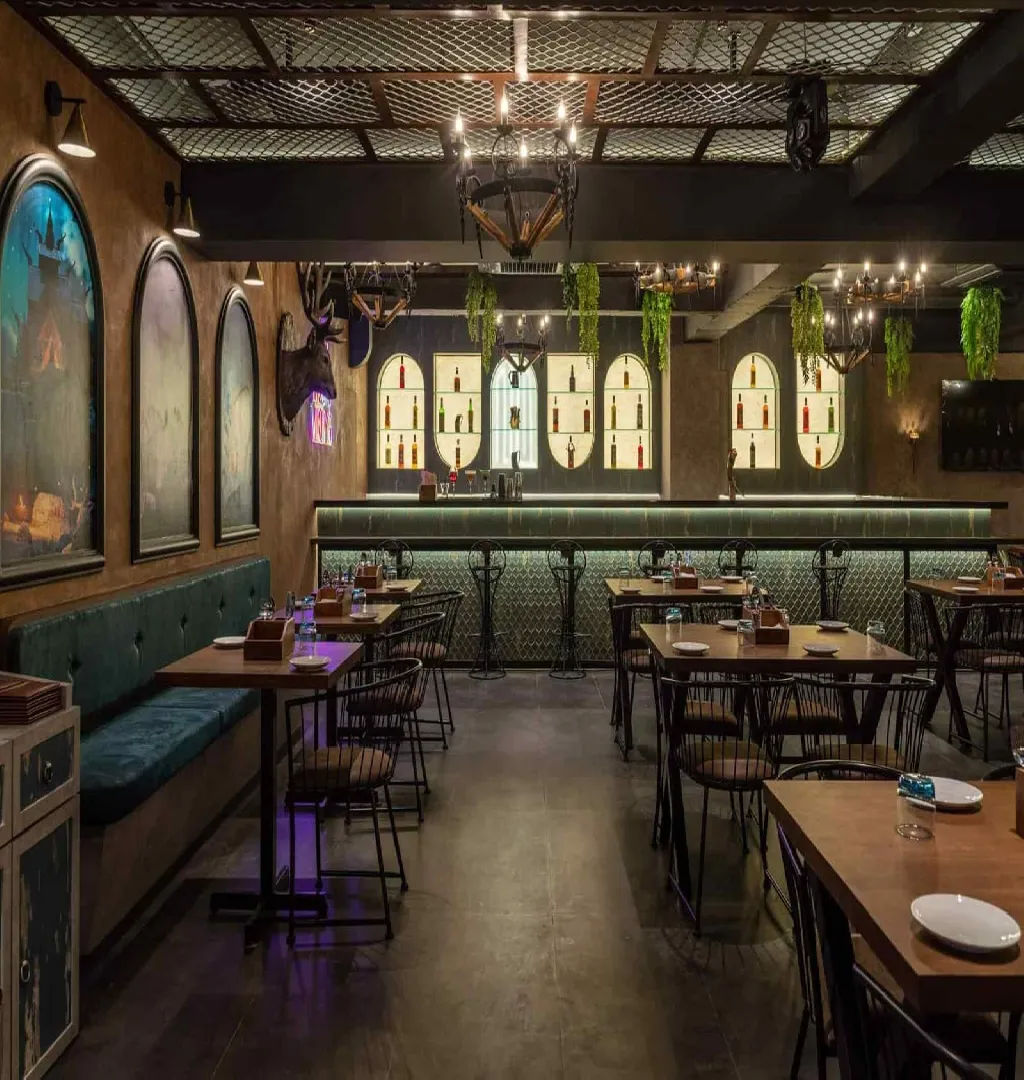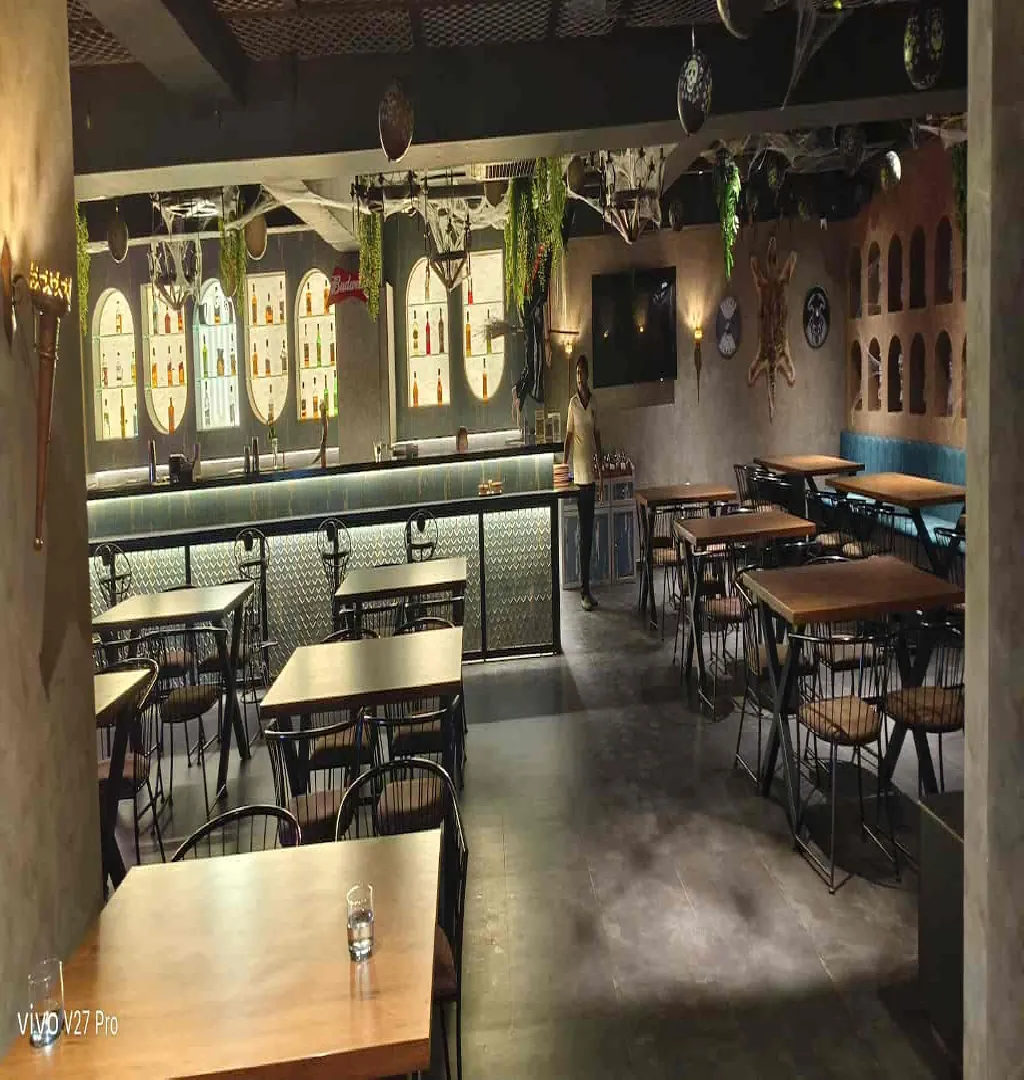 This terrace restaurant and bar in Kolhapur, Maharashtra, was established in 2023 and operates with a liquor license. Spanning 4,500 sq. ft. of self-owned space, it features a Scandinavian/Nordic-inspired interior design with unique highlights such as a Game of Thrones–style wall of faces.