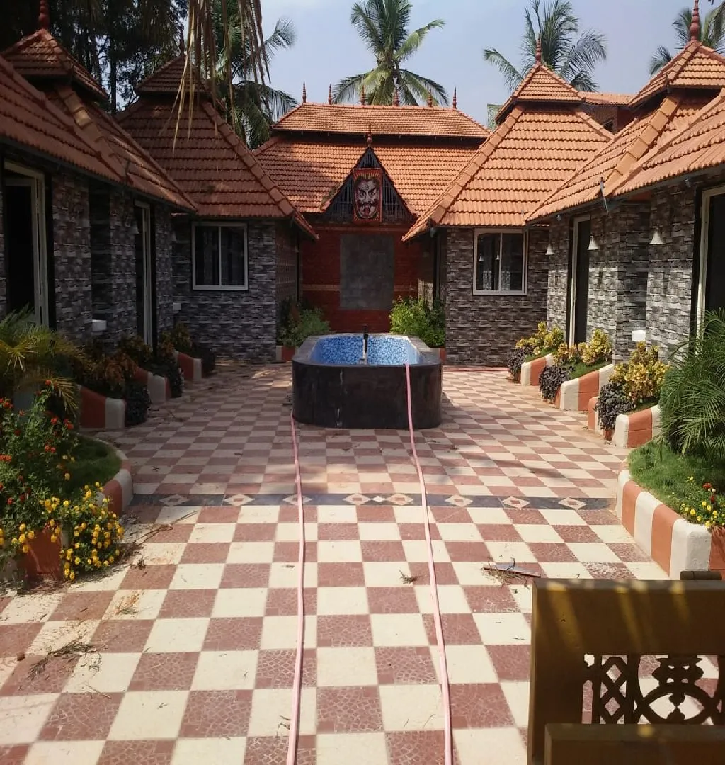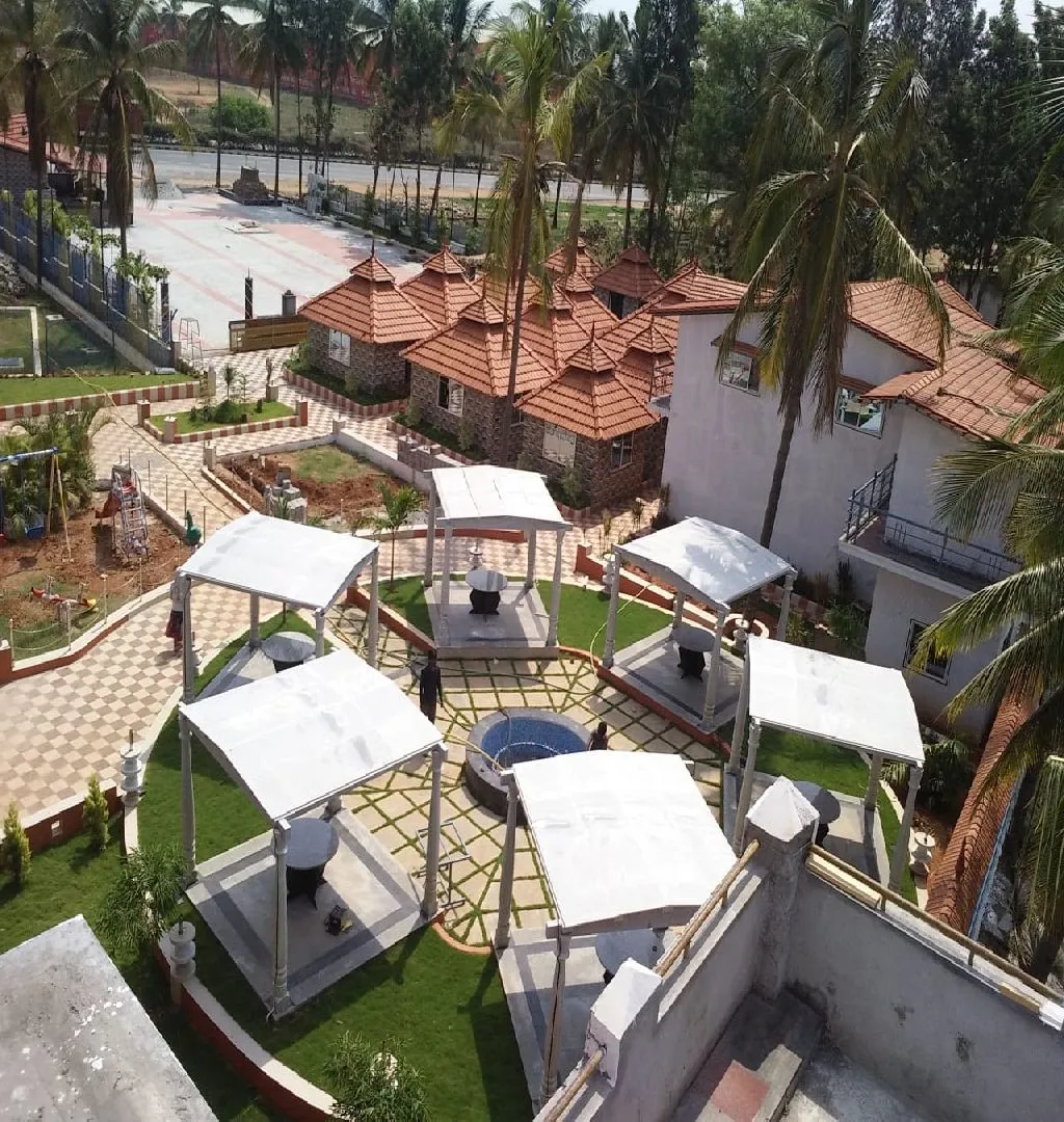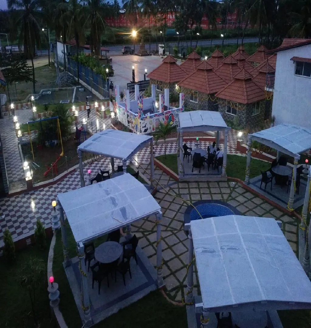 Open party hall, water fountains, car parking for at least 50cars, lawn, children play area, Staff rooms, Bathroom, separate catering kitchen and nonveg kitchen. At least 10rooms constructed which can further be developed to lodge or motels.