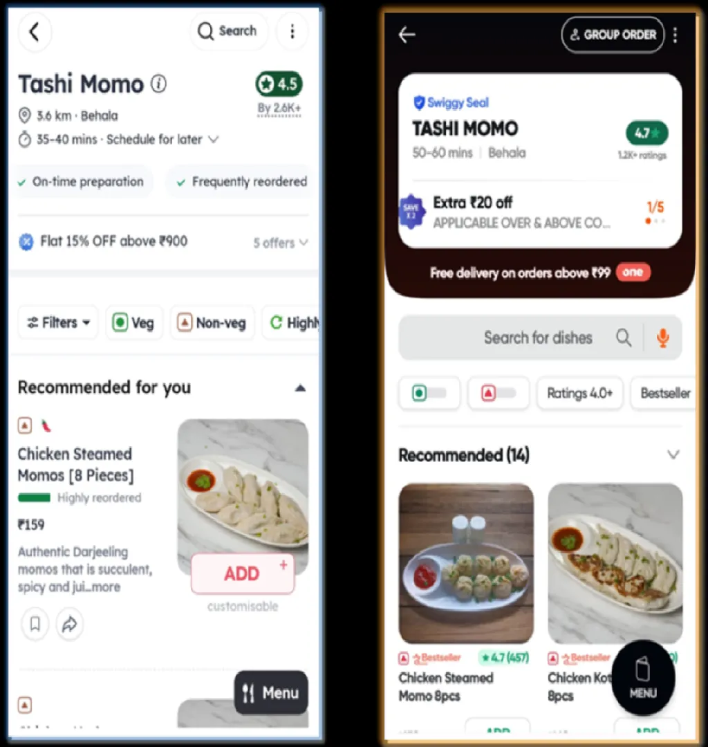Strong Market Presence: More than 1,000 Swiggy reviews (rating 4.7) and 2,200 Zomato reviews (rating 4.4).